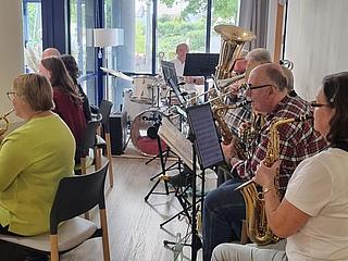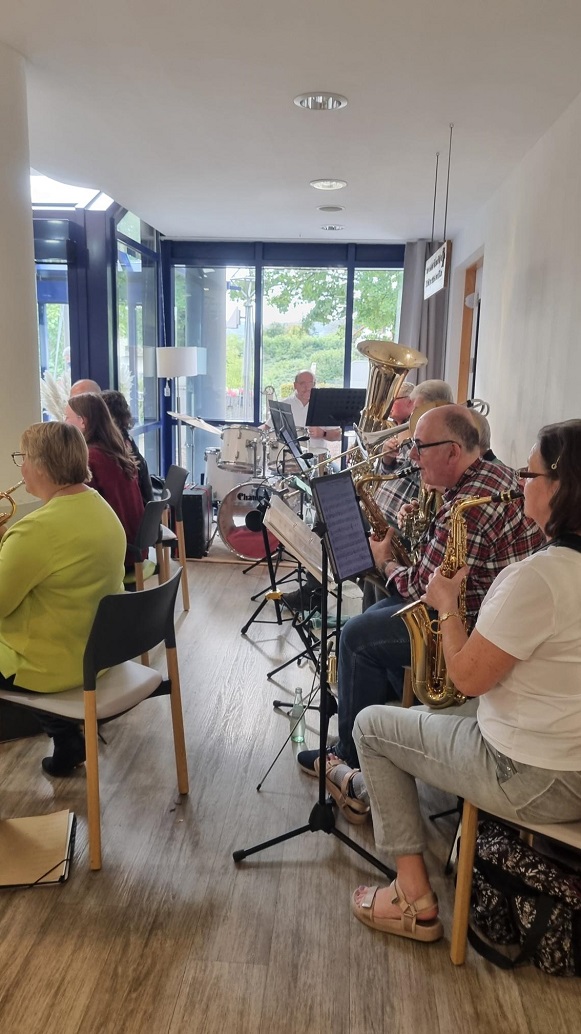 Unsere Bewohnerinnen und Bewohner und viele Gäste konnten die leckeren Flammkuchen, Kirsch- und Apfelkuchen genießen und dabei gemütlich mit allen gemeinsam schöne Stunden verbringen, denn "Gemeinsam feiern bedeutet, das Leben in vollen Zügen zu genießen. Für die musikalische Unterhaltung sorgte mit einem Repertoire von modernen und auch alt bekannten Liedern die Spielgemeinschaft der Musikvereine Merchweiler und Hüttigweiler.