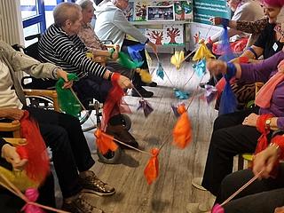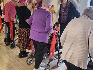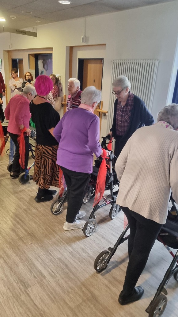 Die wichtigsten Akteure des Tages waren natürlich unsere Bewohnerinnen und Bewohner. Zu dem Lied "Tanze mit mir in den Morgen" zeigte unsere Rollatortanzgruppe "Die Hüftschwinger" ihr Können und erhielt hier tosenden Applaus. Die "Puppentänzer", die zum "Schneewalzer" und "Holzmichel" einen Sitztanz vorführten, begeisterten das gesamte Publikum.